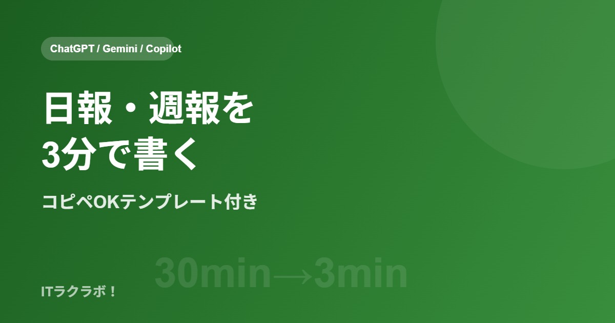 これだけで日報・週報の時間が30分→3分に短縮できます。今日の退勤前にぜひ1回試してみてください!