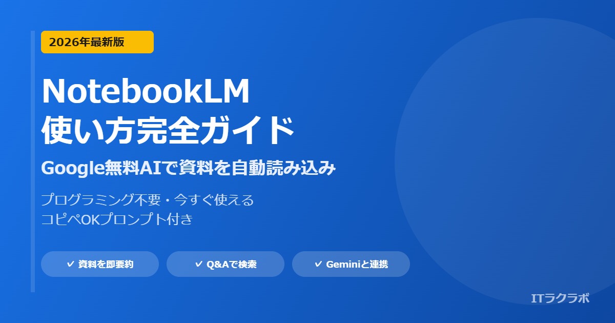 この記事では、NotebookLMの基本から実践的な使い方まで、初心者でもすぐに使えるようコピペ用プロンプト付きで解説します。